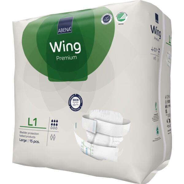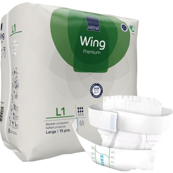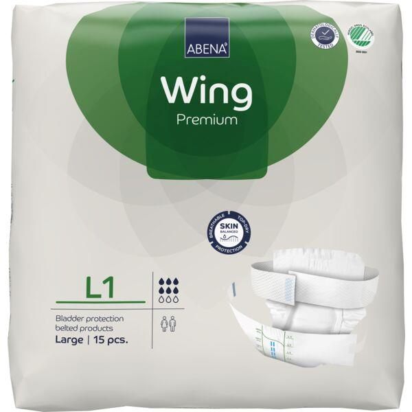 ABENA Wing Premium range consists of belted products for moderate to heavy incontinence featuring the Nordic Eco label. A streamlined assortment available in 4 sizes and 4 absorbency levels.
