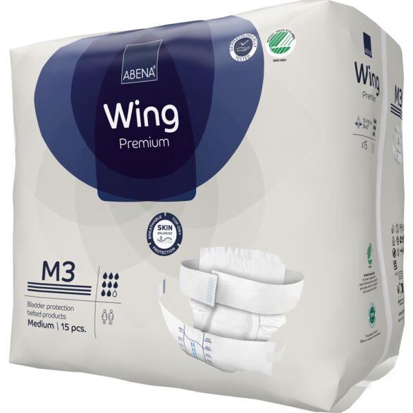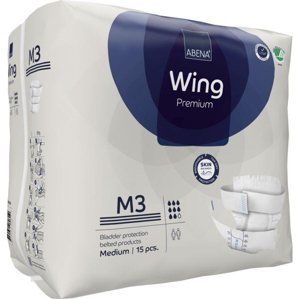 ABENA Wing Premium range consists of belted products for moderate to heavy incontinence featuring the Nordic Eco label. A streamlined assortment available in 4 sizes and 4 absorbency levels.